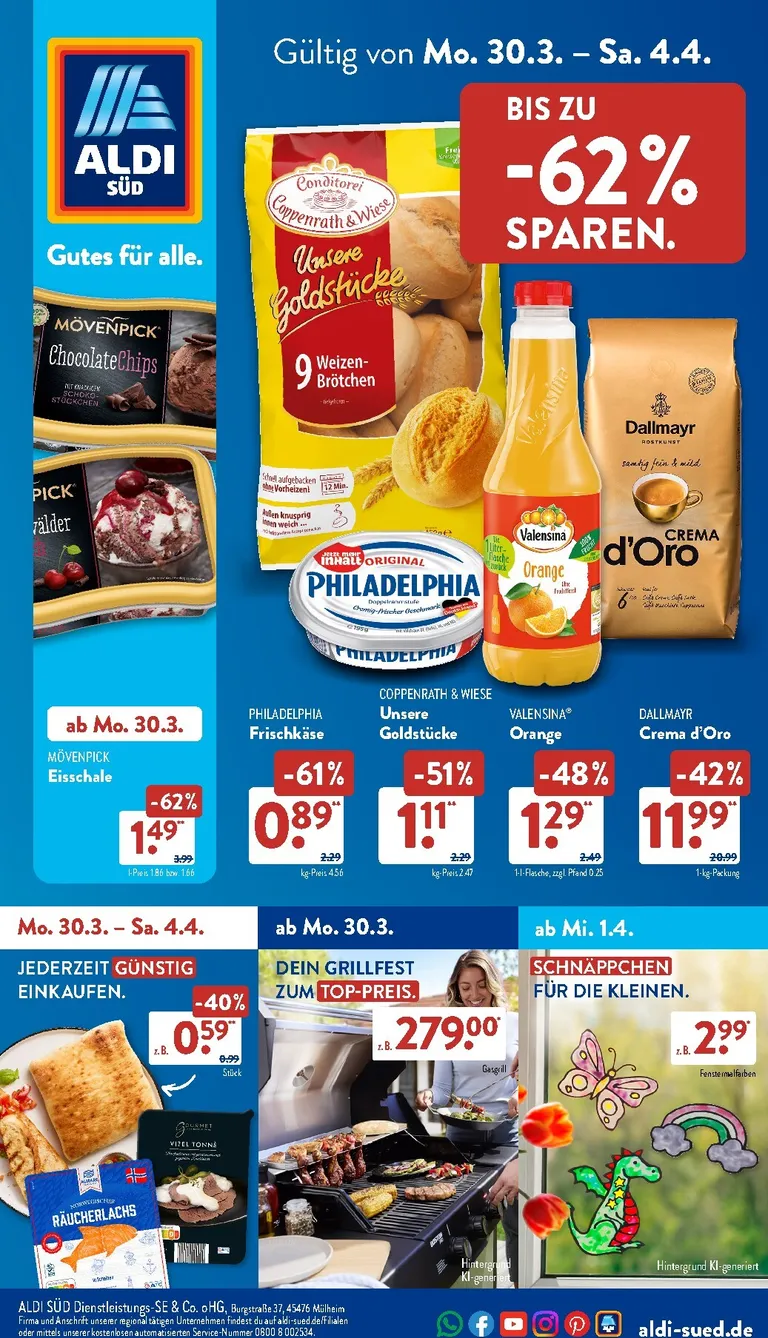 Sie haben soeben den ALDI Süd Prospekt angesehen, gültig vom 30.03.2026 bis 04.04.2026. Kaufino bringt Ihnen die Prospekte aller beliebten Geschäfte, damit Sie die neuesten Angebote und Rabatte bequem an einem Ort finden können.